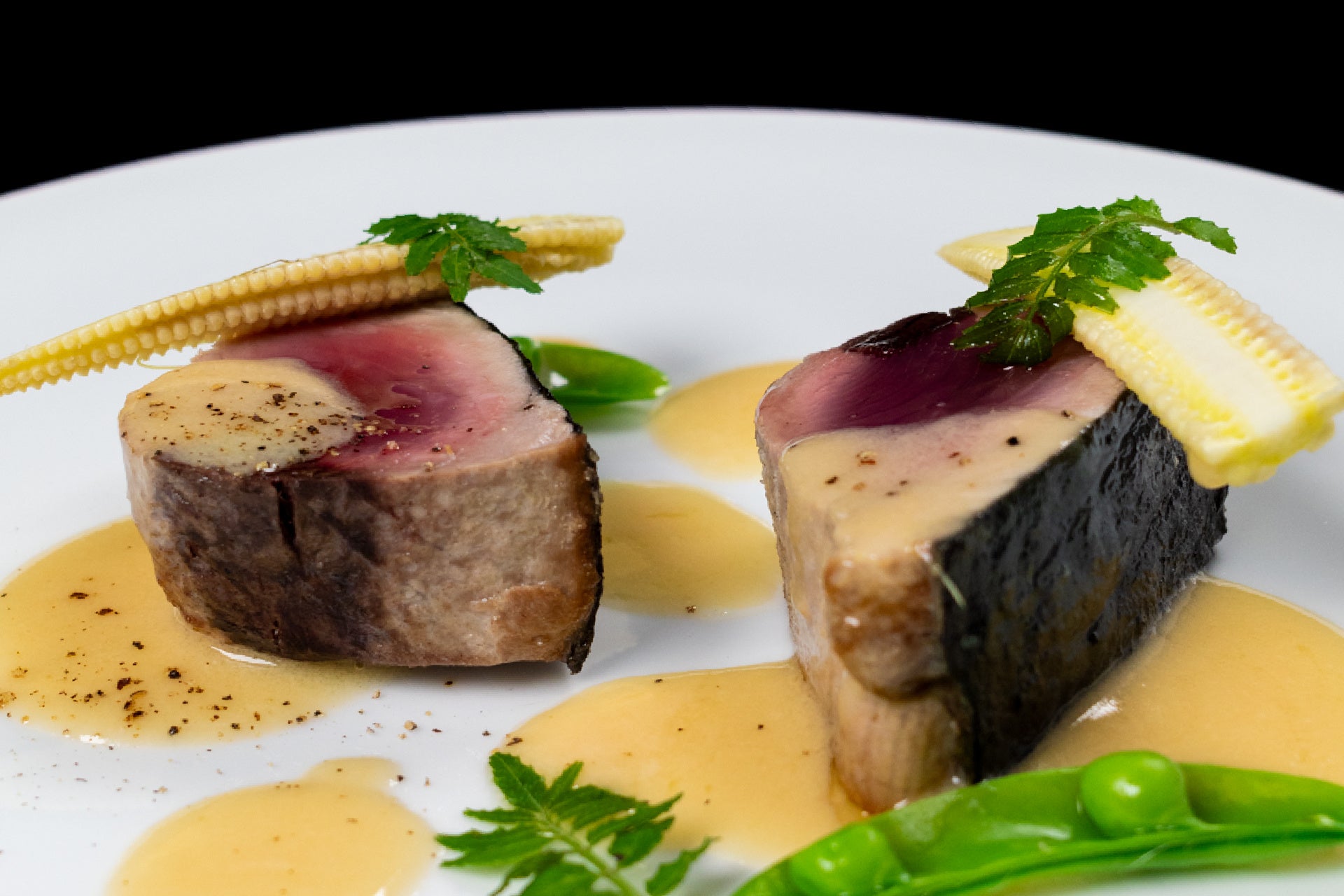 千葉県房総市の山あいで育まれた「嶺岡ジビエ」の鹿肉を使用したメインディッシュ。