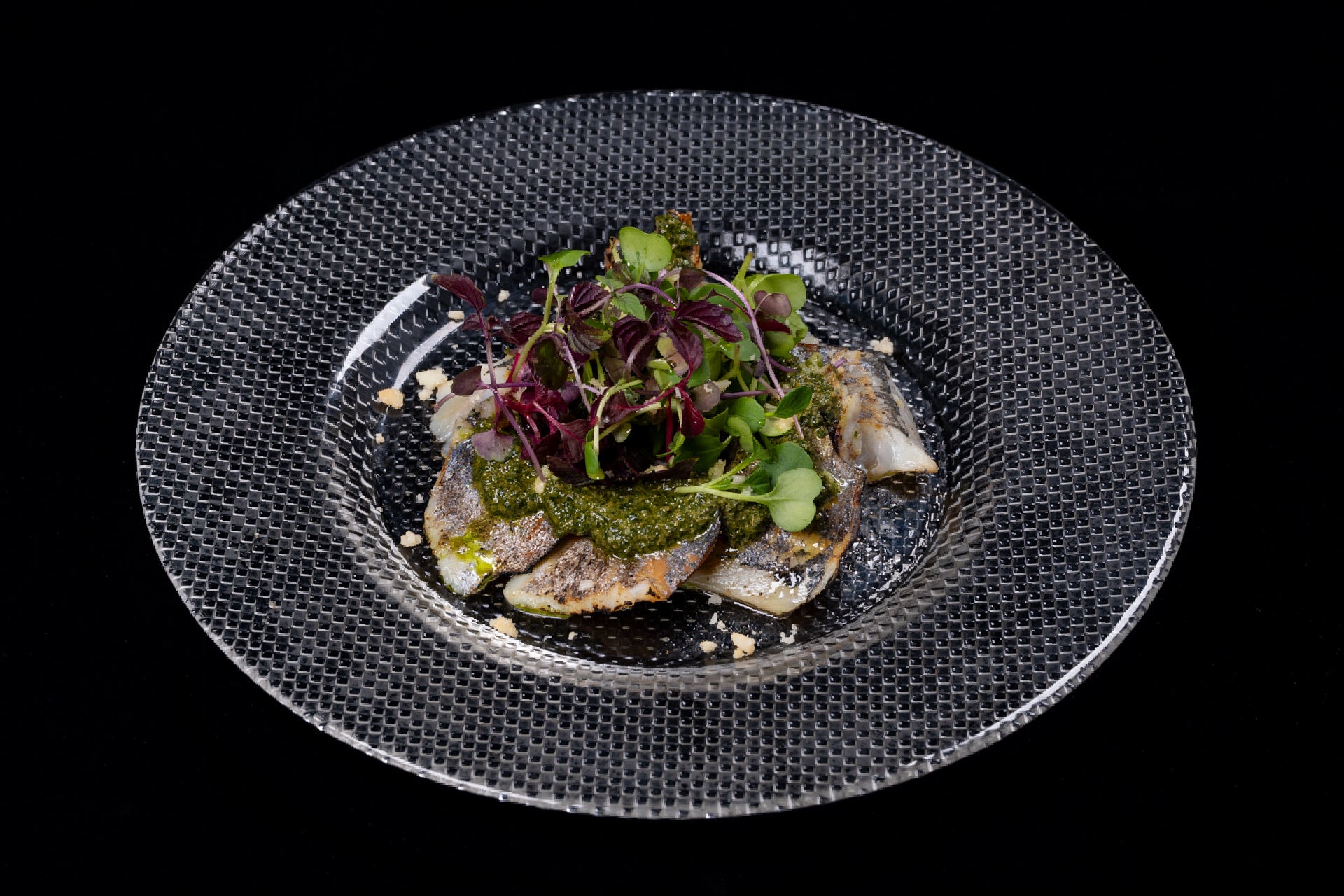 しっとりとした鰹の身に、白味噌と白ワインを合わせたソースを重ね、和の趣を感じさせる味わいに。