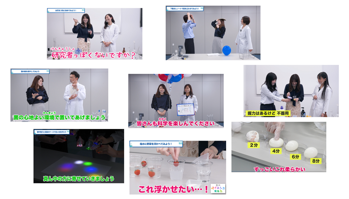 本プログラムは、主に小学生を対象に、サイエンスの楽しさを実感できるコンテンツ・体験機会を提供していきます。まずスタートとして、当社の若手研究開発の社員を中心に、子どもたちから集めたふとした身近な疑問に答える形で、実際に実験し、実証したものを動画にまとめました。また、同内容を自由研究に活用できるよう、自宅などでも再現できるように編集し、その方法をウェブページにて紹介しています。