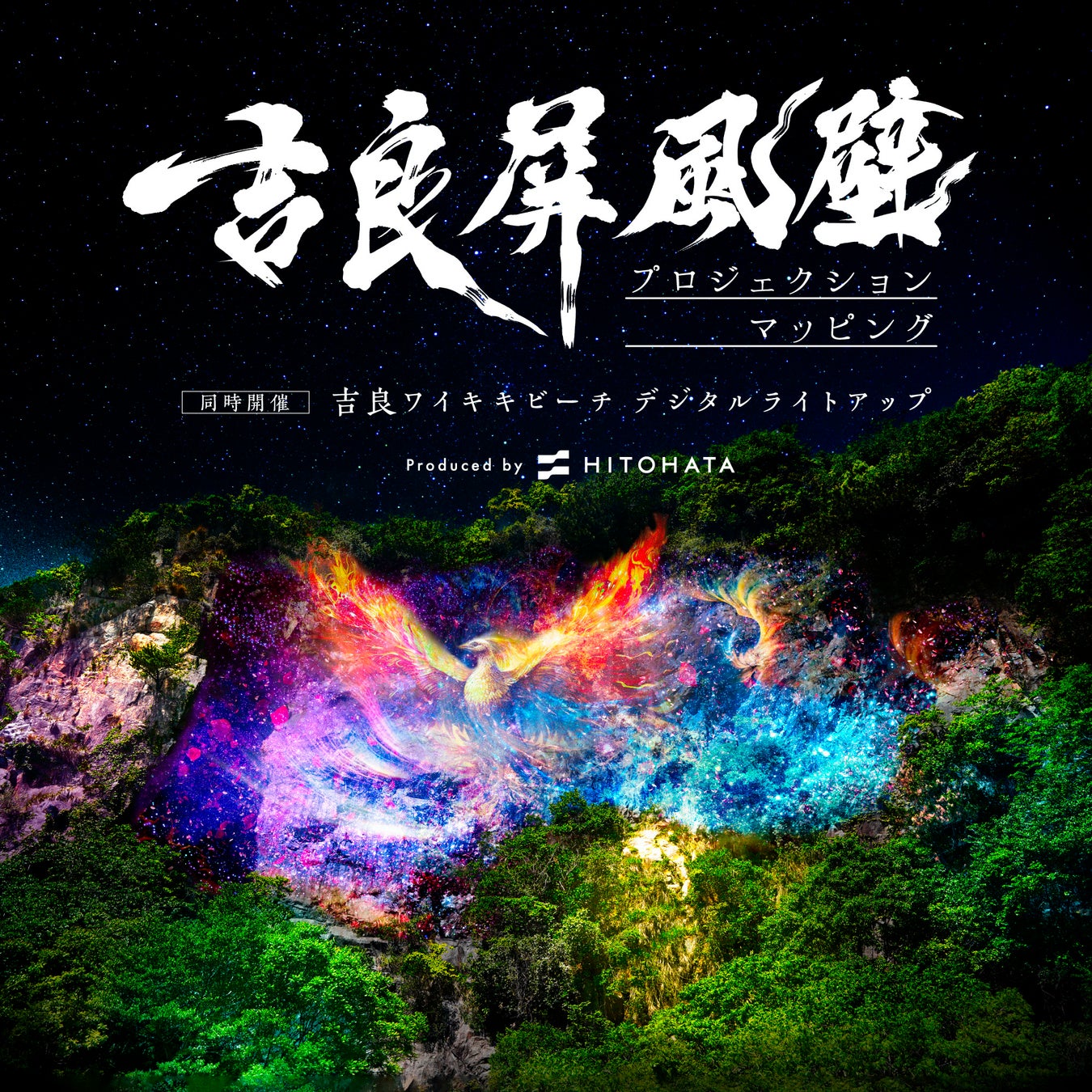 【開催中】一旗プロデュース「西尾市制70周年記念事業 吉良屏風壁 プロジェクションマッピング」を開催。三河湾国定公園・吉良ワイキキビーチと新たな名所・吉良屏風壁での光のアートイベント。公式写真を公開。