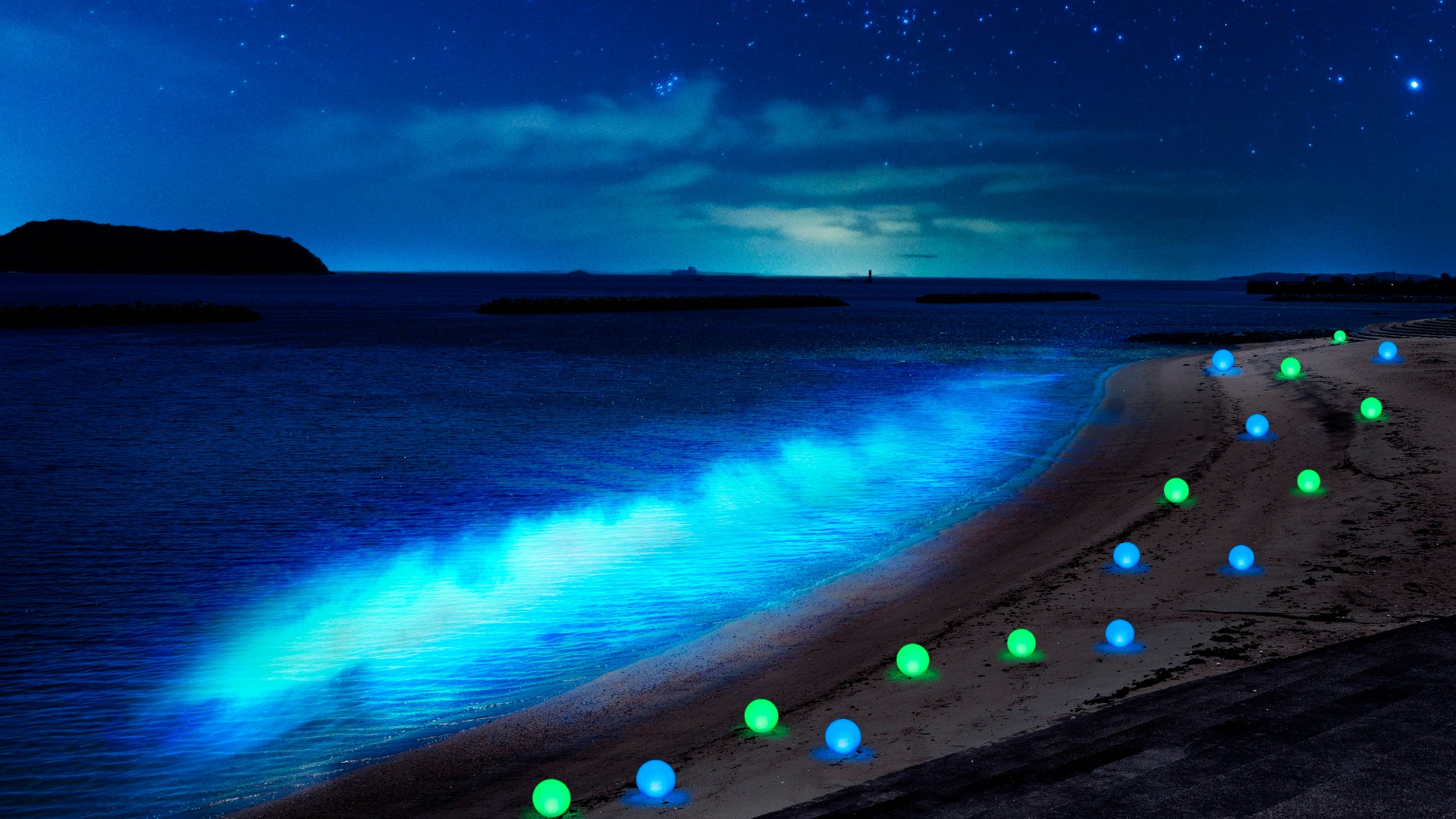【内容】 白砂の海岸を光のオブジェやプロジェクションマッピングで幻想的に彩ります。