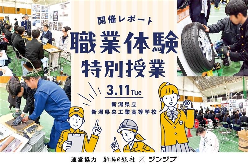 高校生の就職を支援する「ジンジブ」(大阪市)は3月11日に、新潟日報社(新潟市)と共に新潟県立新潟県央工業高等学校(三条市)の2年生向けの職業体験特別授業の運営協力をいたしました。