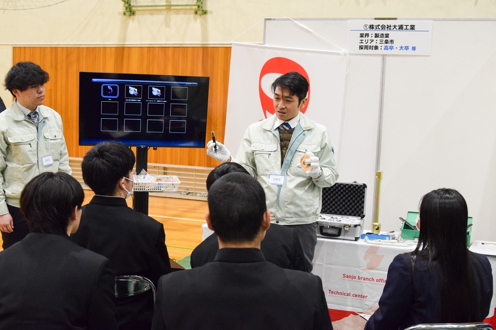 本校は毎年6割以上の生徒が就職しており、ほとんどが地元新潟県央地域の企業への就職です。この地域は、金属加工業を主とした製造業が盛んですが、BtoBを主とした企業が多く、生徒が直接知る機会が少ないのが現状です。本校での工場見学、現場実習などに加え、さらに接点を増やし、地元企業への理解を深めるため本イベントに参加させていただきました。