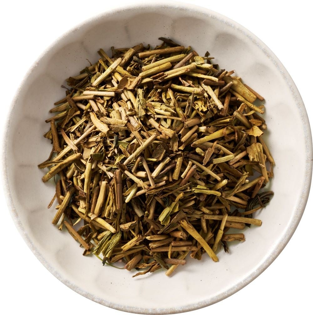 たっぷりおいしさを蓄えた初摘みの棒茶と、1年間じっくり寝かせたリーフ茶を使用。