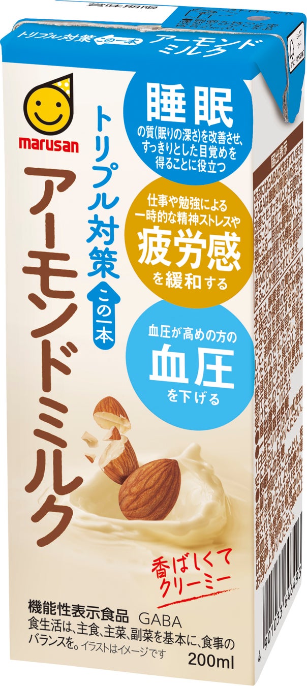 豆乳、アーモンドミルク初※1!トリプルヘルスクレームの機能性表示食品!~気になる睡眠・疲労感・血圧を植物性ミルクでおいしくサポート~