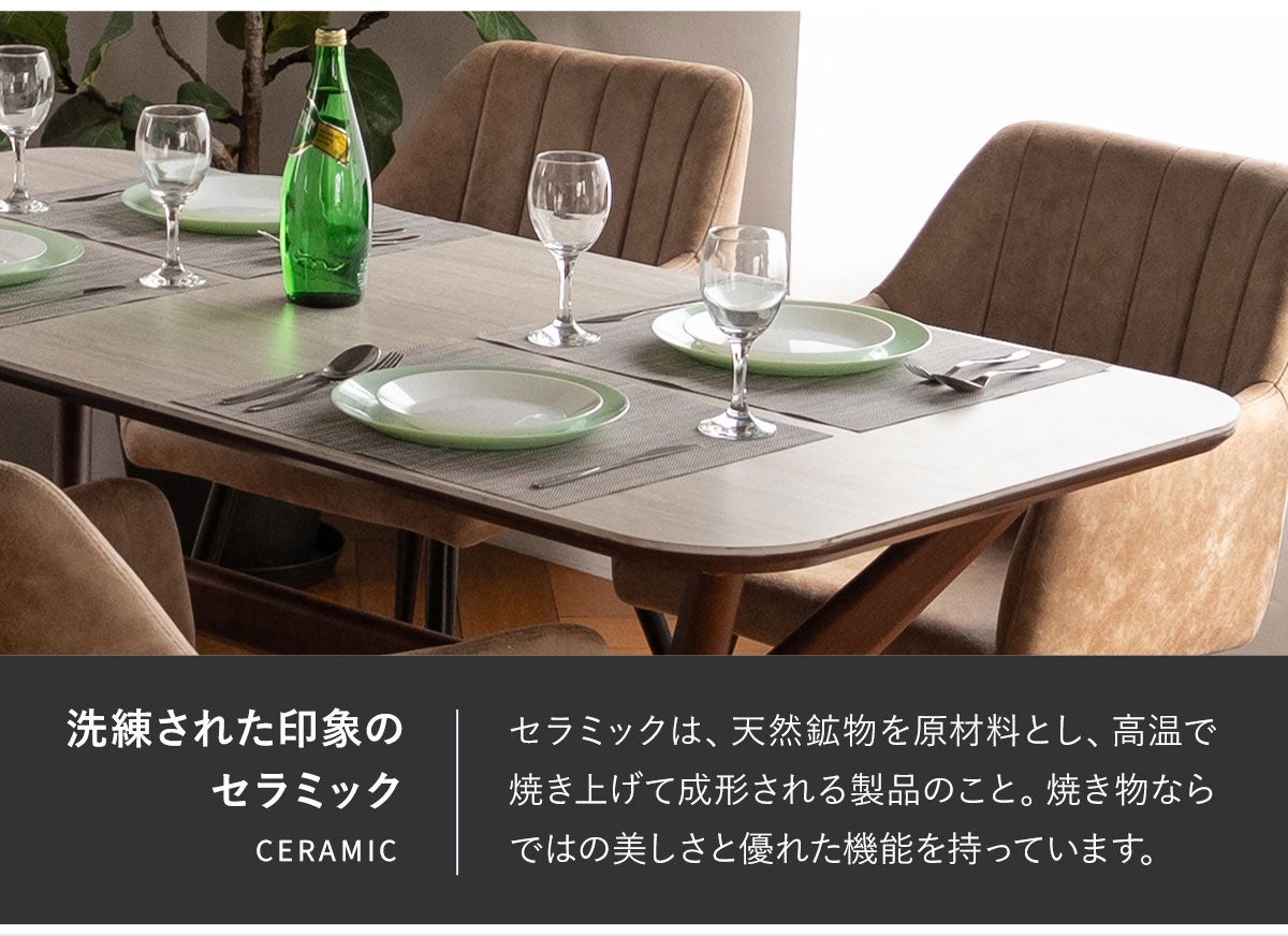 スタイリッシュな木製脚と傷・汚れ・熱に強いセラミック天板を組み合わせた、都会的な印象のスクエアダイニングテーブル『CERANO(セラーノ)』を販売開始。
