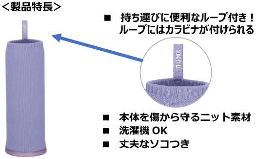 ケータイマグ専用のカバー『サーモス マイボトルカバー(APJ-350/500)』を新発売します。『マイボトルカバー』にケータイマグを入れることで、ボトル本体を傷から守ることができます。さらにカバーにはループが付いており、カラビナを付けることもできるので持ち運びに便利です。また大人でも使いやすいようシンプルなデザインとカラーラインアップをご用意しました。