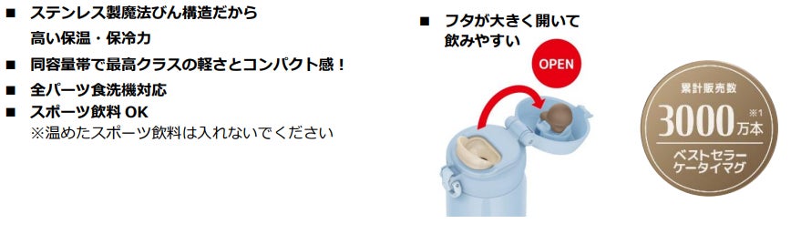 このたび、2012年に発売したサーモス史上最も売れている水筒『真空断熱ケータイマグ(JNLシリーズ) 以下:従来品』を初めてリニューアルします。軽量・コンパクトである従来品は、2012年の発売以降、性別や年齢を問わず使いやすいことから、大変ご好評をいただき、累計出荷本数3,000万本を達成(※1)。今回のリニューアルで、さらに洗いやすく、飲みやすい仕様になりました。