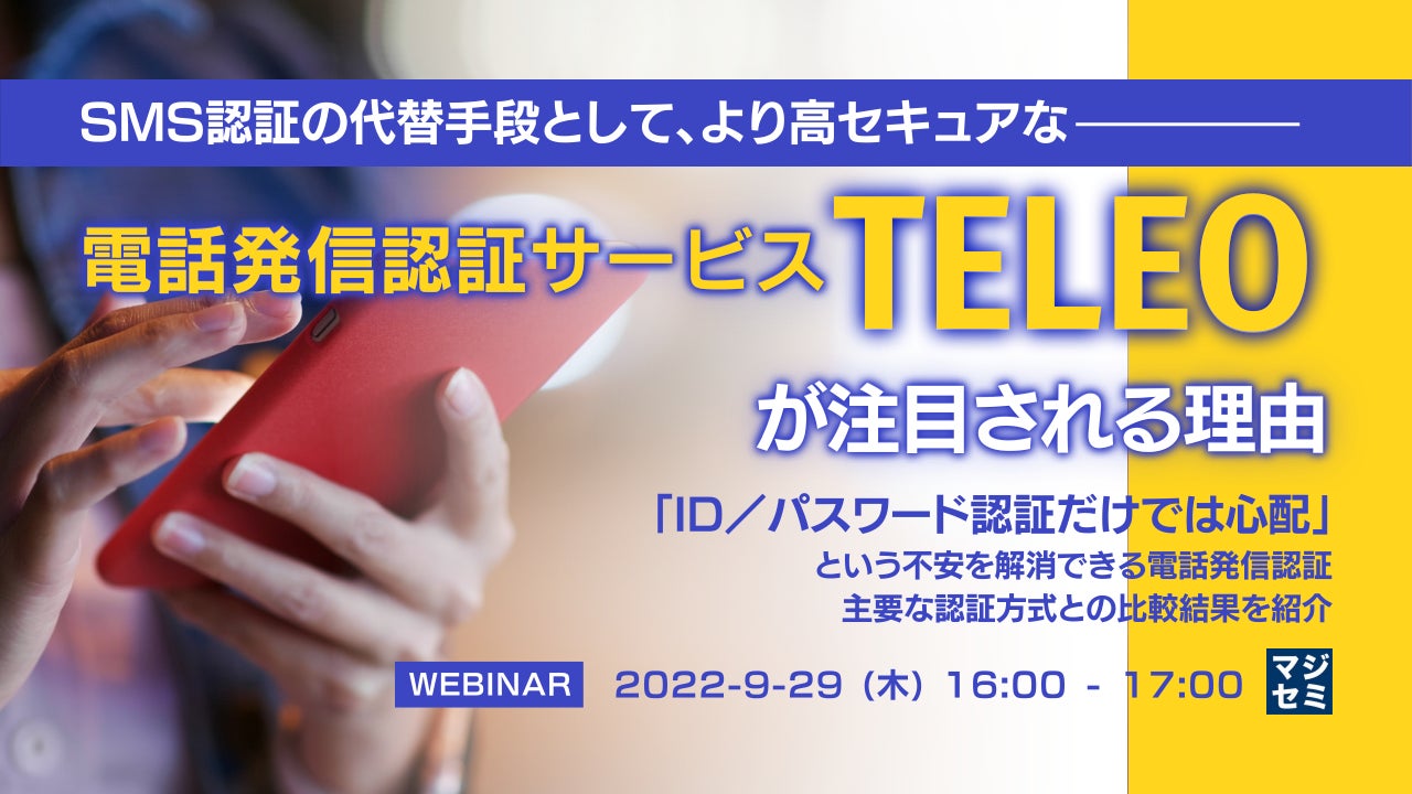 本セミナーでは、スマートフォンで利用されることが多い認証方式を比較し、それぞれの手法の特徴について説明します。また、「電話発信認証サービス TELEO」が。なぜSMS認証の代替として最適であるかの理由について解説いたします。