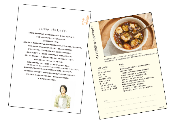 またご購入者特典として、榎本さんからのメッセージや、該当商品を使用したレシピ3種を同梱。ご希望の方には、発酵季節だよりオリジナル熨斗紙をお掛けします。