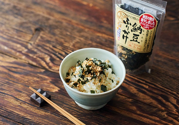 納豆のふりかけ、といえばコレ!といわれるほど安定した人気と美味しさを誇る商品。化学調味料不使用で、フリーズドライ加工のひきわり納豆と、風味豊かな有明海産の海苔をたっぷり使用しています。口に含むと納豆特有の粘りと香りが楽しめ、サクサクとした食感でご飯との相性はもちろん、パスタや鶏の炒め物にも合います。