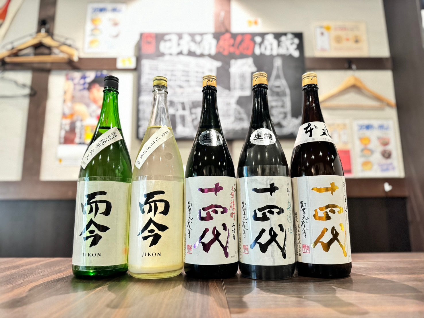 ラインナップには、幻の日本酒『十四代』を贅沢に3種、そして『而今』の中でも大人気の『にごり酒』を含む2種の計5種をご用意。