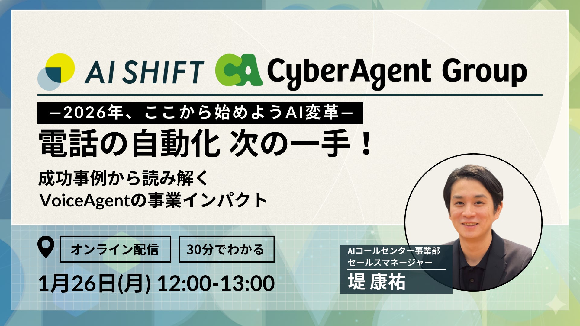 株式会社サイバーエージェント(本社:東京都渋谷区、代表取締役:山内 隆裕、東証プライム市場:証券コード4751)の連結子会社である株式会社AI Shift(本社:東京都渋谷区、代表取締役社長:米山結人、以下「当社」)は、「電話の自動化は進めたものの、期待した成果が出ていない」「AIを導入したが、現場で使いこなせていない」といった課題に対し、AI Worker VoiceAgentがどのように事業成果へつながっているのかを、業界別の導入事例とともに紐解くセミナーを開催いたします。