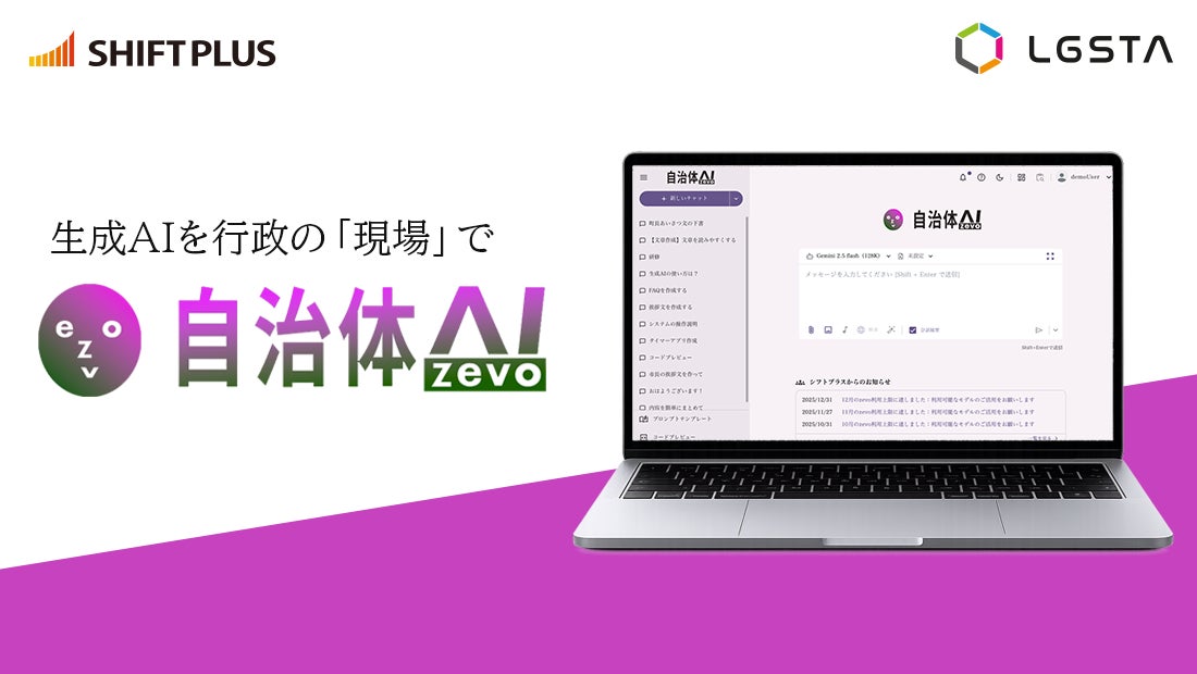 シフトプラス株式会社(代表取締役:中尾 裕也、本店:宮崎県都城市宮丸町3070番地1/本社:大阪府大阪市西区江戸堀2丁目1番1号 江戸堀センタービル8階/以下シフトプラス)は都城市と共同開発を行った、ChatGPT/Claude/Geminiなどの生成AIをLGWAN環境で活用できるシステム「自治体AI zevo(ゼヴォ)」が、埼玉県の生成AI共同利用対象製品に選定されたことをお知らせいたします。