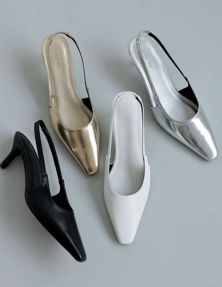 細めのスクエアトゥが魅力のバックストラップサンダル。