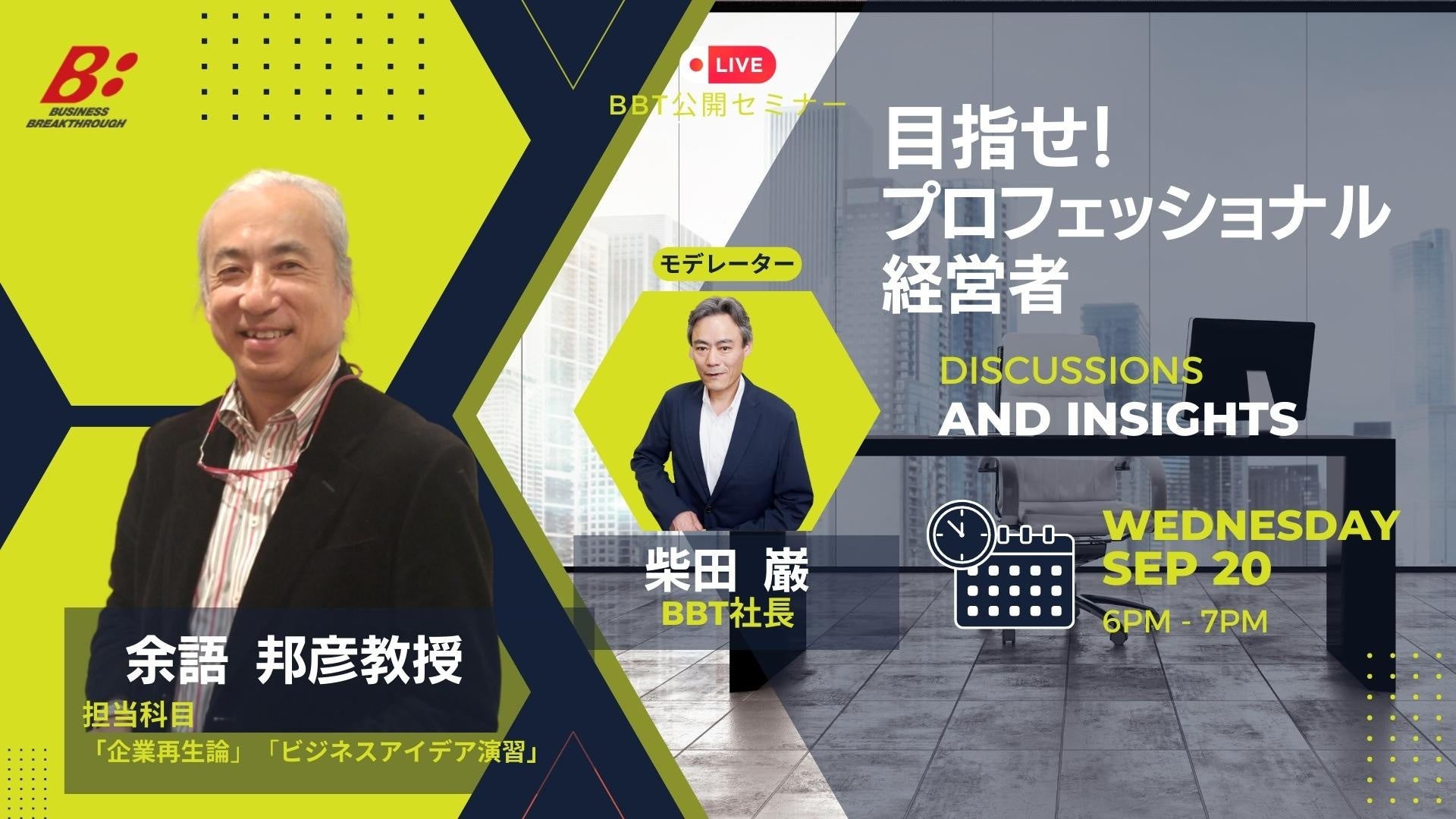 【BBT大学院、無料公開セミナー開催】目指せ!プロフェッショナル経営者
