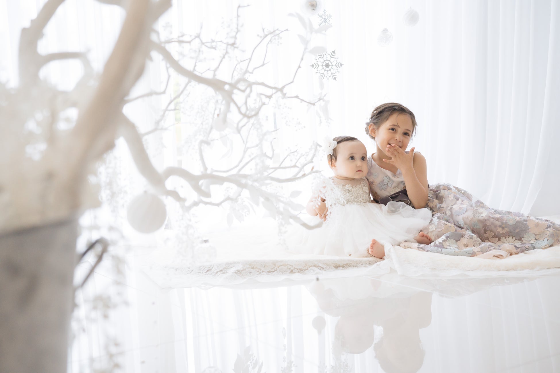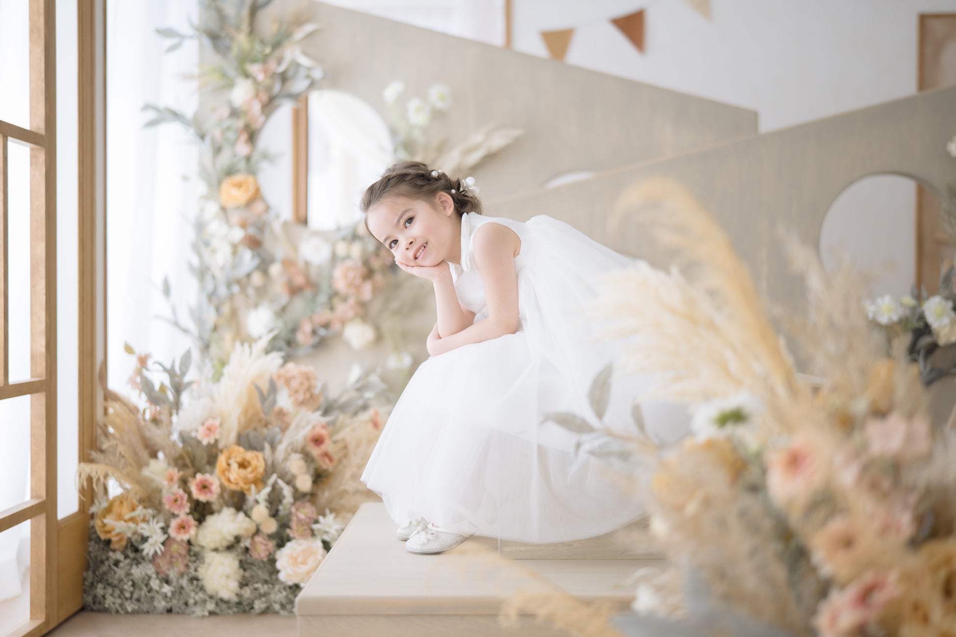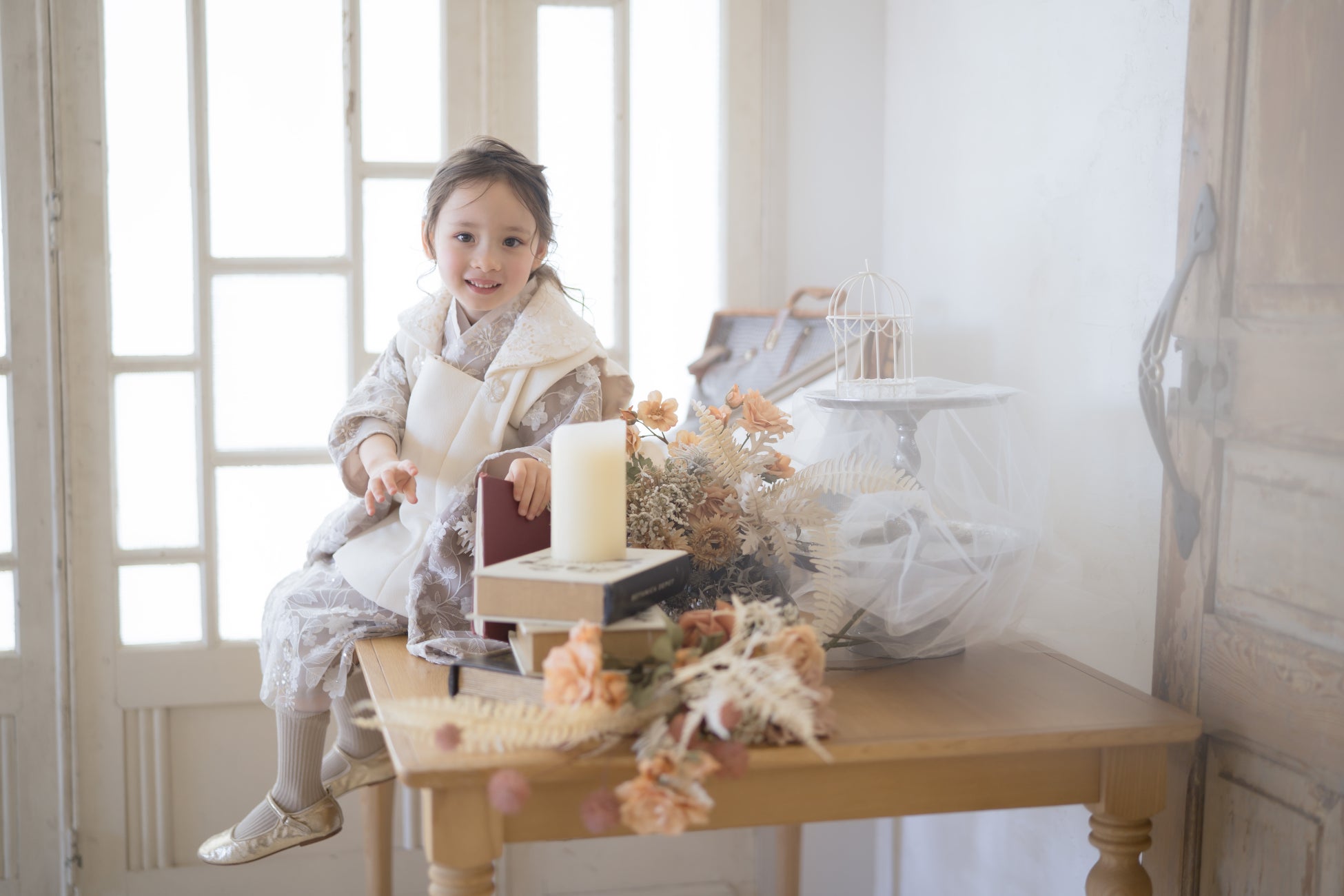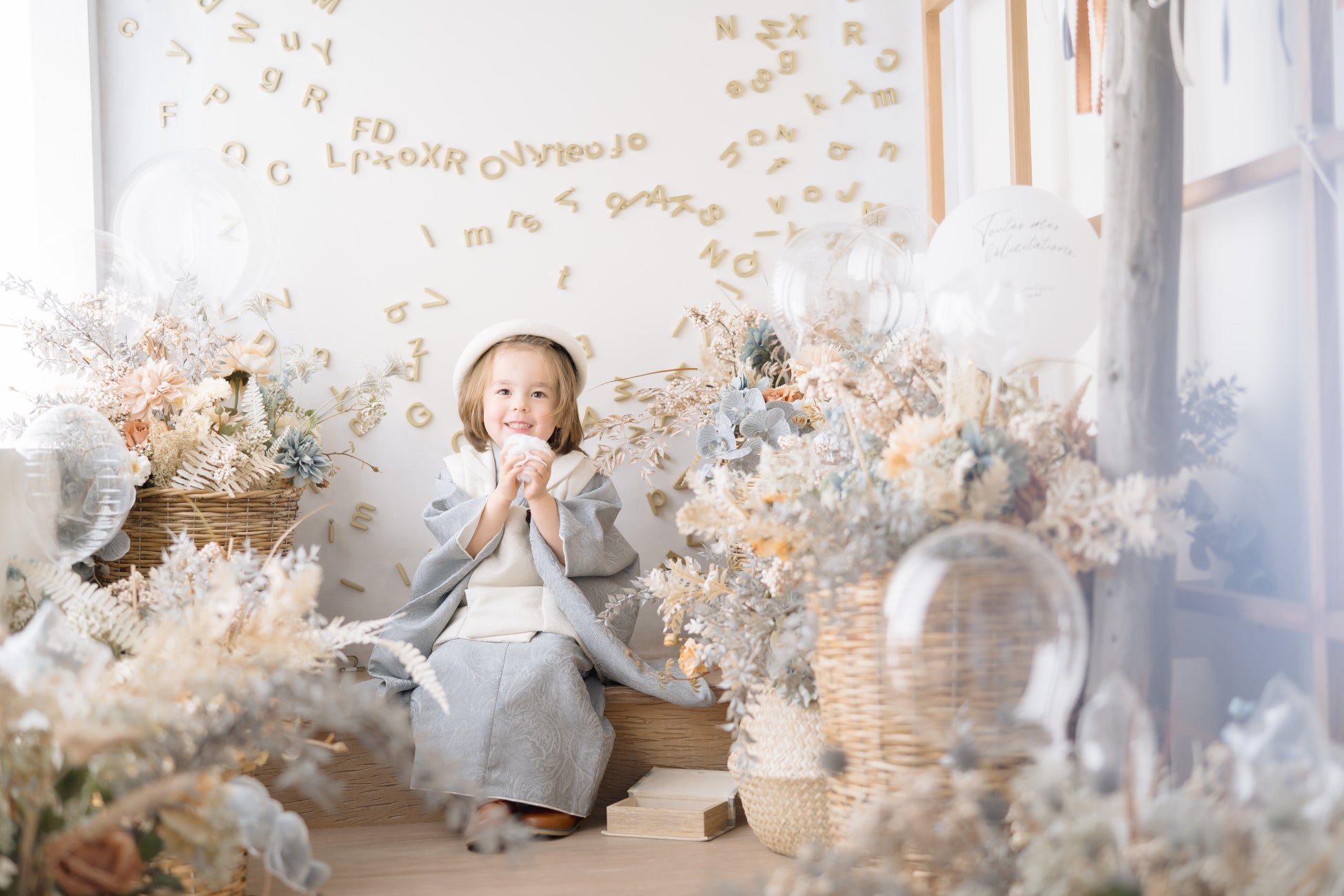 完全プライベートの空間を2時間使用でき、リラックスした雰囲気の中でお子様の自然な姿を撮影できます。ヘアメイクはもちろん、インテリアや一部衣装もコフレオリジナルで取り揃えています。毎年撮影に訪れる根強いファンも。