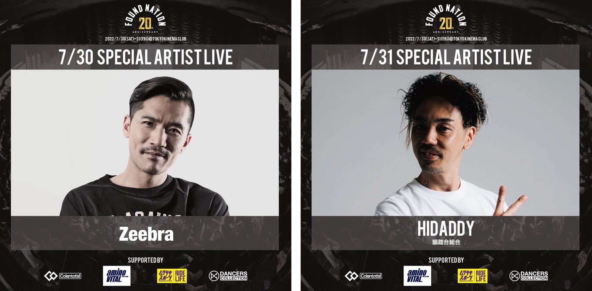 ジャパニーズヒップホップレジェンド『Zeebra』韻踏合組合『HIDADDY』ゲスト出演決定!祝辞コメント到着。ブレイクダンス国内最大級祭典 FOUND NATION20周年アニバーサリーイベント!