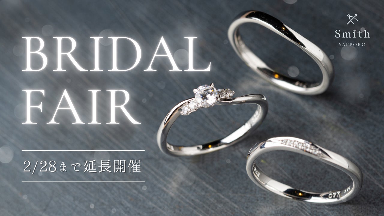 株式会社一宝(所在地:北海道札幌市)が運営する手作り結婚指輪・婚約指輪専門店『工房Smith札幌本店』は、2026年2月1日(日)より開催し、多くのお客様にご好評をいただいている「ブライダルフェア」を、2026年2月28日(土)まで期間延長することを決定いたしました。