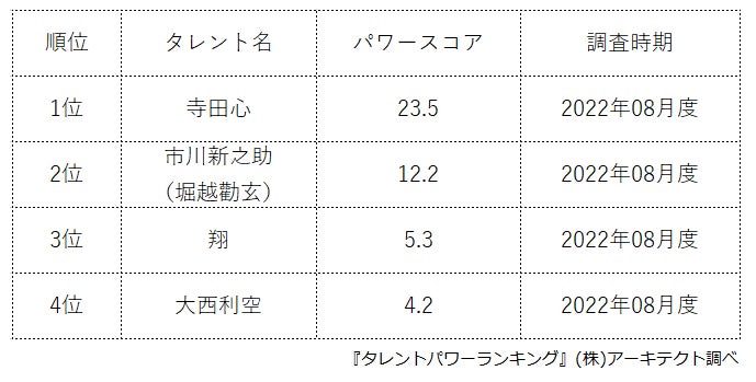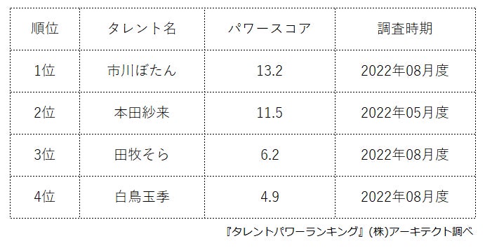 本ランキングは、2022年8月度に実施したタレント調査データ(一部過去実施データ)を利用し、タイトルに応じてランキング形式でまとめたものです。