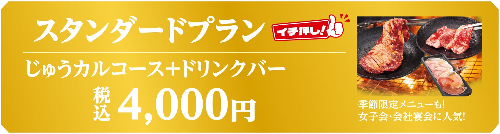 2.スタンダードプラン:4,000円(じゅうカルコース+ドリンクバー)