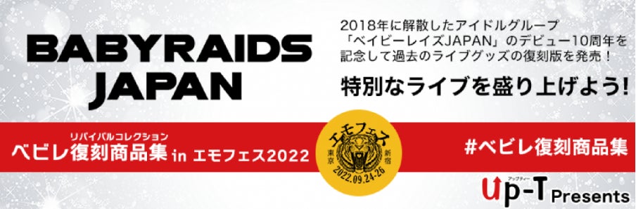 2018年解散の「ベイビーレイズJAPAN」のデビュー10周年を記念し、 Up-Tとのコラボ企画がスタート。過去ライブグッズの復刻商品を販売します!