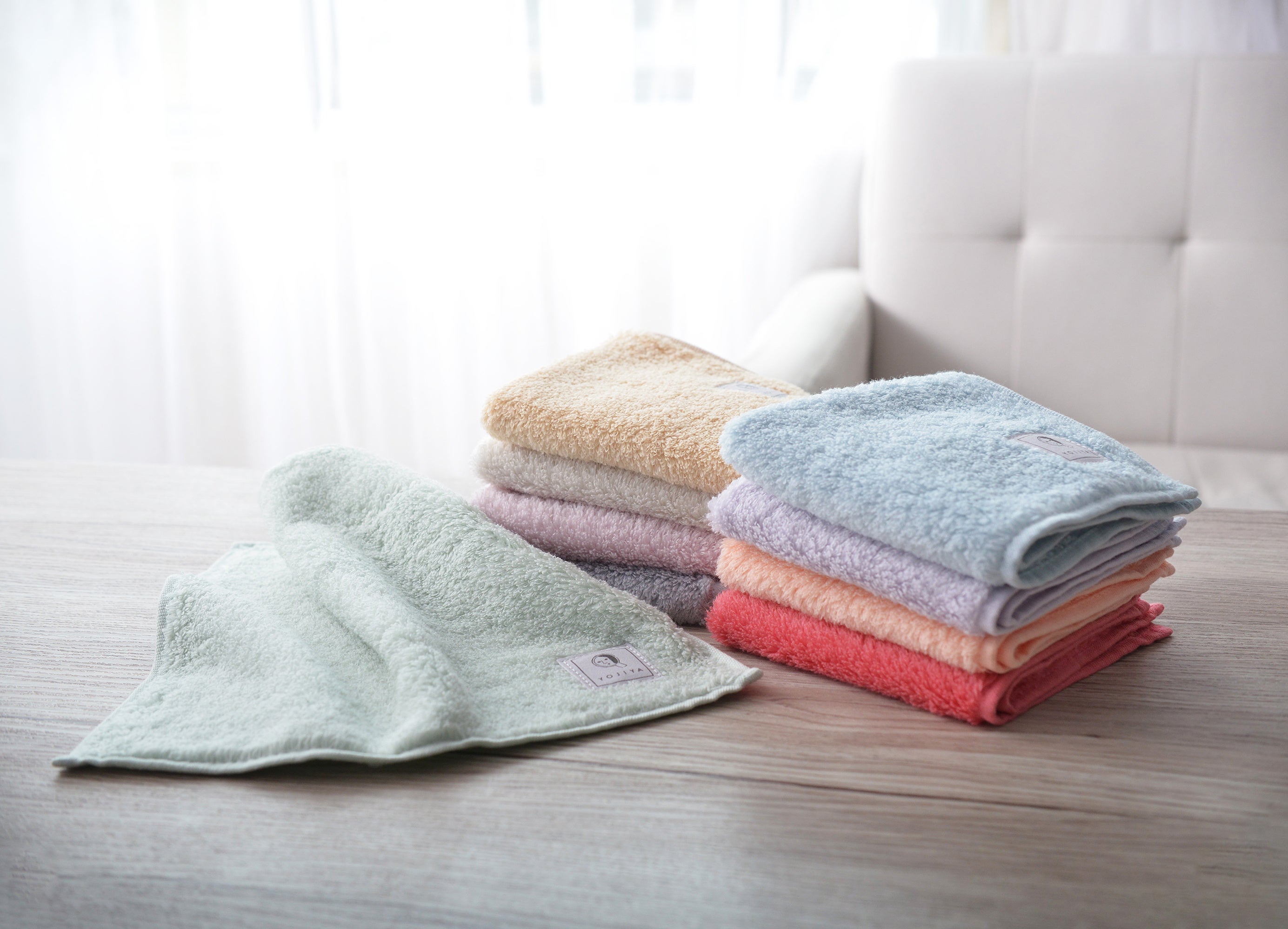 「ふんわりタオルハンカチ」はやさしいくすみカラーの全9色展開。シンプルなデザインなので、どんな使用シーンにも馴染みます。