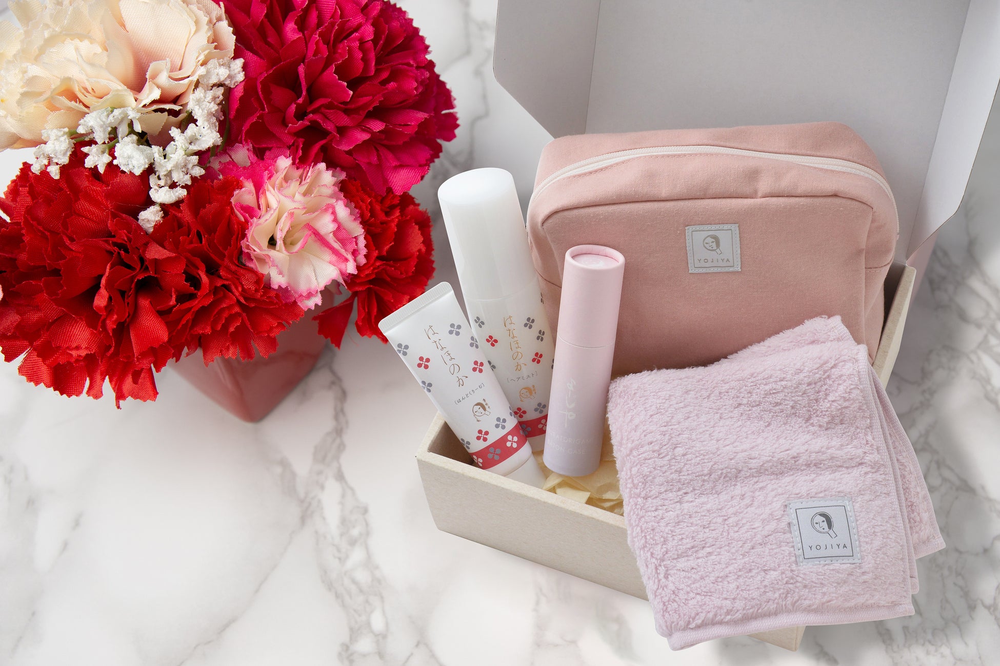 よーじやの肌ケアアイテムとともにギフトボックスにセットすることで、日常的に愛用していただける贈り物に。