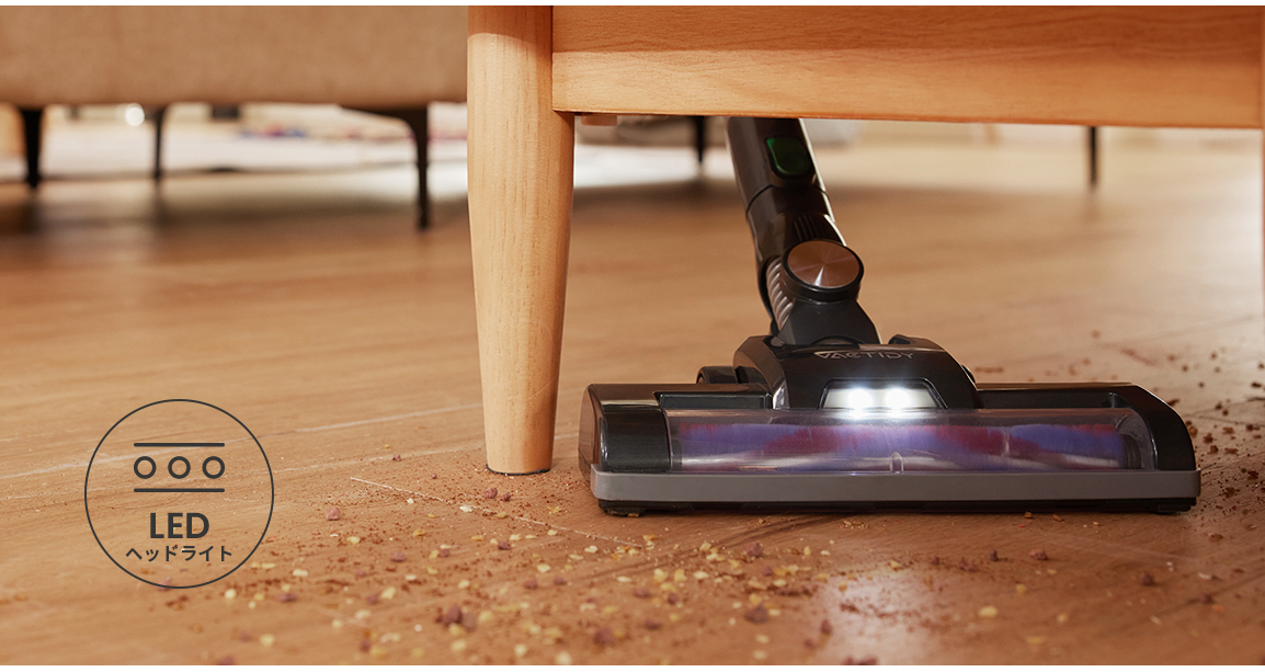 Vactidy V8には、他にも多くの優れた機能があります。例えば、掃除機本体にはLEDライトが装備されており、暗い場所でもしっかりと掃除することができます。