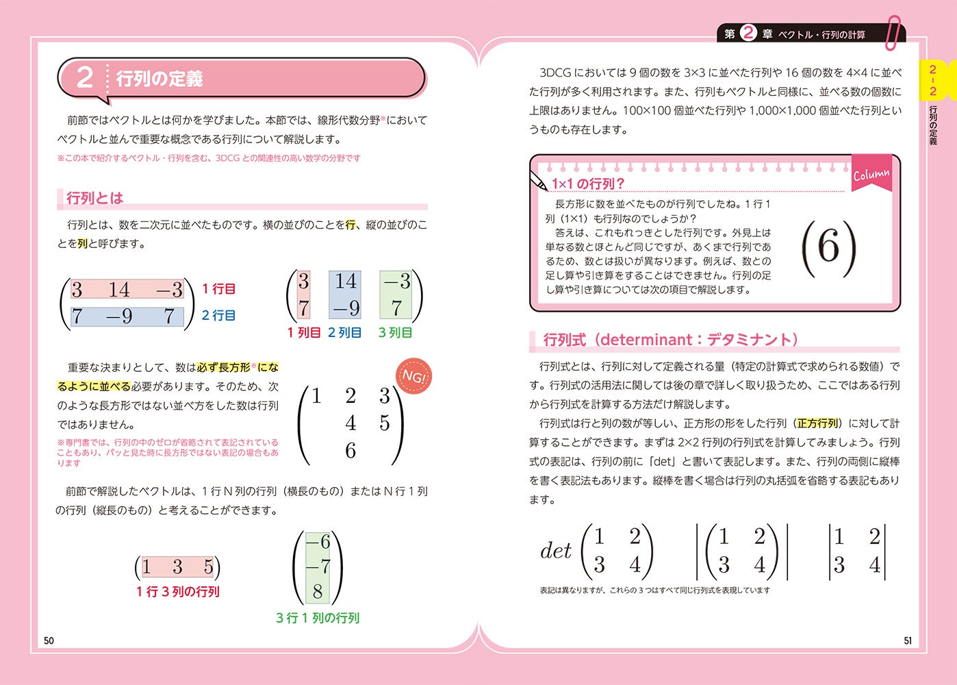 CG数学のきほんであるベクトル・行列を、そろそろ覚えてみたい方に、ぜひ読んでほしい一冊です。