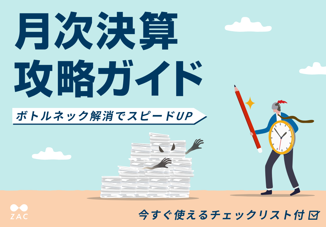 月次決算業務を遅延なく進めるために、課題の特定に役立つチェックリストと課題別の攻略法をまとめた資料です。チェックリストの結果に応じた4つのタイプごとに具体的な解決策やZACの活用例を解説しています。ボトルネックを解消してスピードUPを図りましょう。