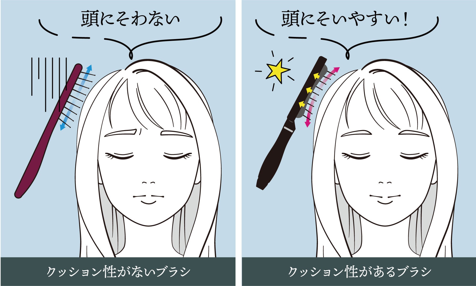 クッション性に優れたやわらかパッドで、頭皮に負担がかかりにくい。