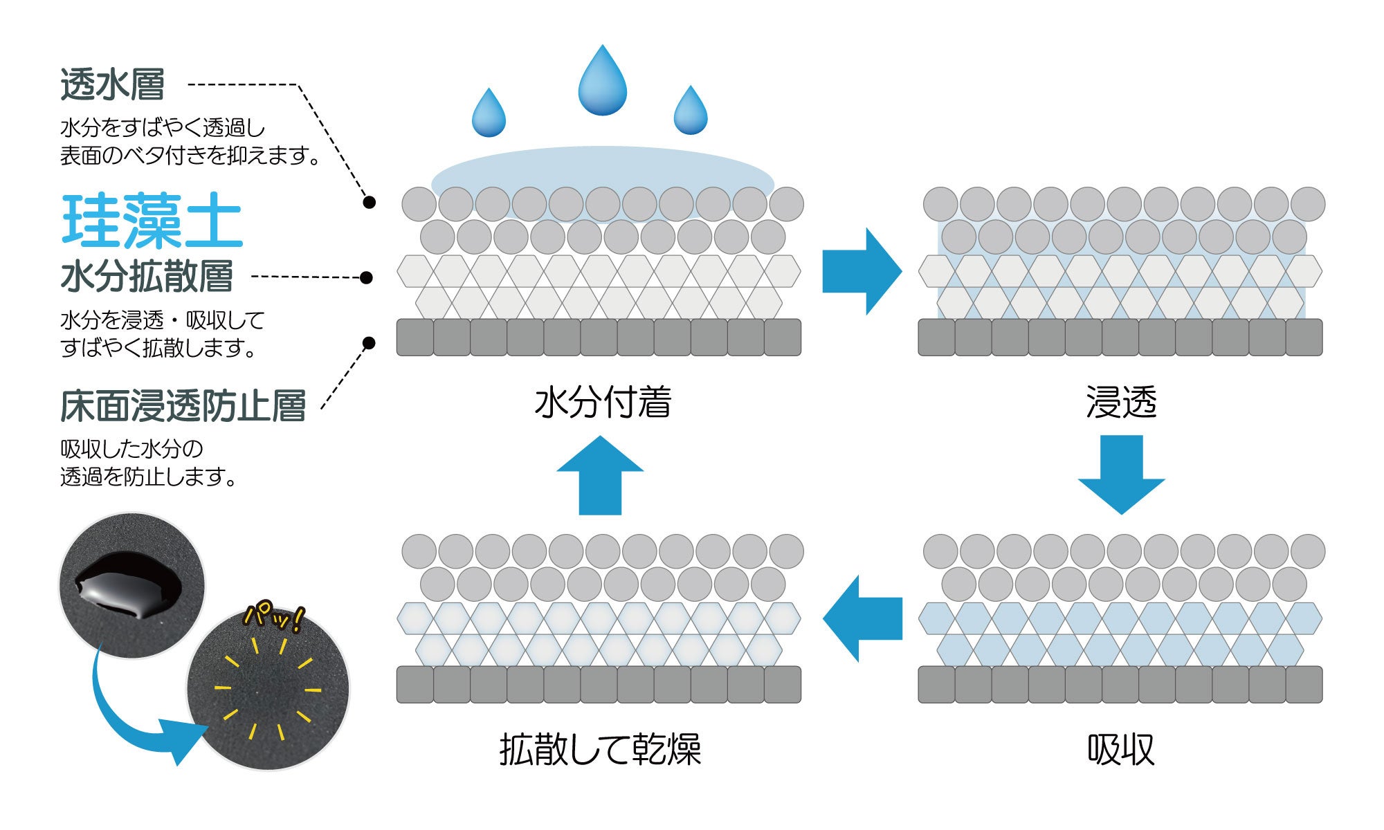 ※人体に悪影響を及ぼす成分を含まないように公的機関にて試験を実施し、基準値をクリアした珪藻土配合パッドを採用しています!