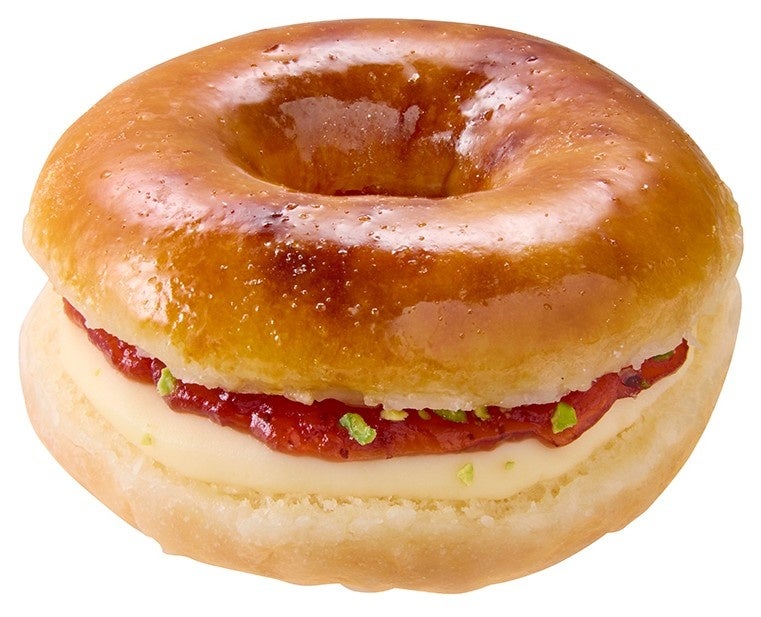 『クリスピー・クリーム・プレミアム 名古屋 ブリュレ グレーズド ストロベリー & チーズ』は、オリジナル・グレーズド®の表面を焦がし、カリッとキャラメリゼ仕立てにした「ブリュレ グレーズド」をアレンジして開発した、"ブリュレサンド”の新シリーズです。