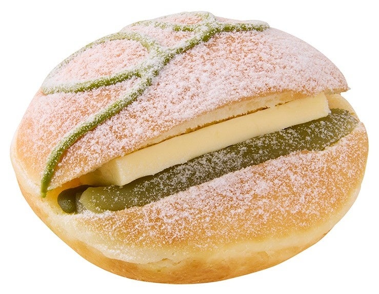 ふわふわの生地に、上品な香りと穏やかな甘味が特徴の西尾抹茶入りのなめらかな抹茶クリームと、渋みの後に奥深い甘さやコクが感じられる京都産抹茶を使用した抹茶あん、そしてコク深いバターを挟んだ贅沢な“あんバタードーナツ”です。仕上げに抹茶コーティングでくるりと線を描いた後に、優しい甘さの粉砂糖をトッピングしました。