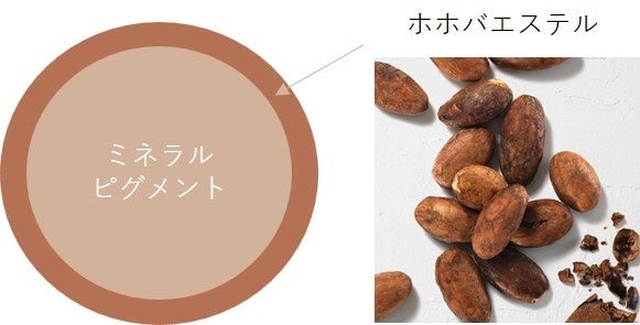 2.ミネラル ピグメント(顔料)自体を、保湿効果も持つ天然ホホバエステル*2で包み込んでい