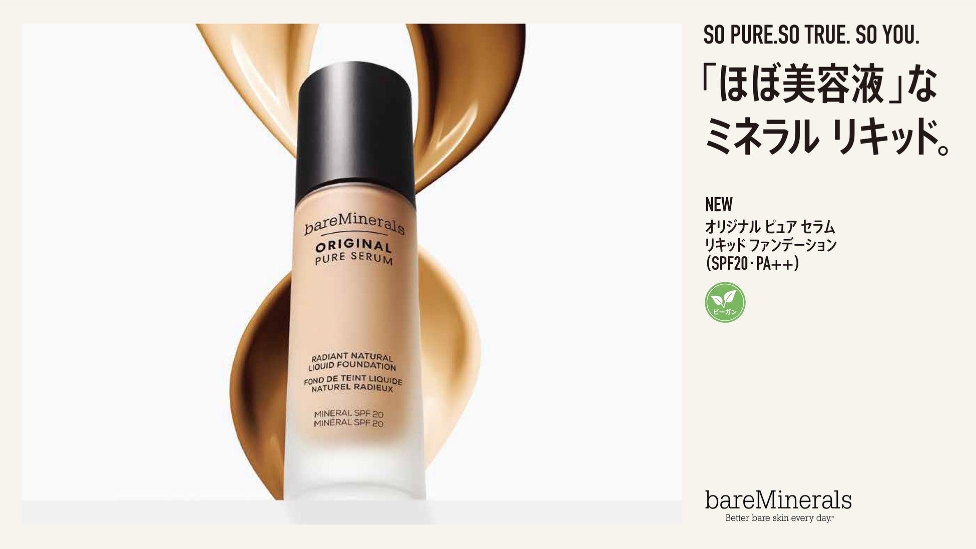 【ベアミネラル】スキンケア成分93%!ベアミネラルのDNA「オリジナル」から生まれた「オリジナル ピュア セラム リキッド ファンデーション」(SPF20・PA++)誕生