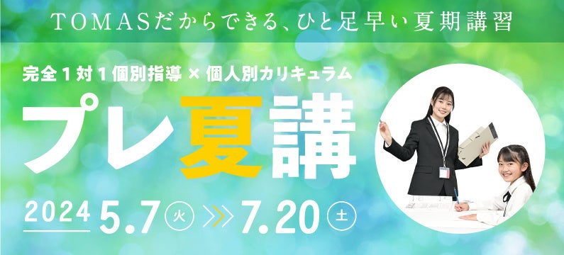 【完全1対1個別指導×個人別カリキュラム】TOMASプレ夏期講習会 受付スタート