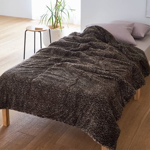 一番の癒しの場所として毎日を過ごしていただきたく、髪の毛より細い極細糸を使用してゴージャスなレオパード調に仕上げました。まるでペットを撫でているようなうっとりと、とろけるような肌ざわりに癒されてください。