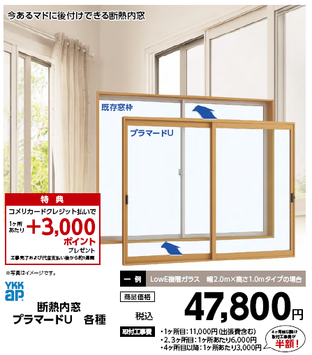 税込価格:47,800円(LowE複層ガラス 幅2.0m×高さ1.0mタイプの場合)