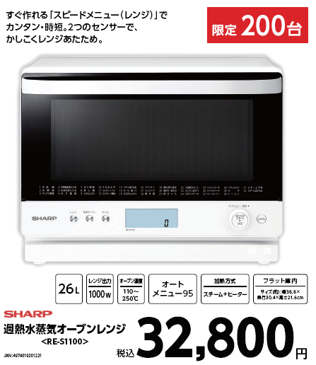 商品名:SHARP 加熱水蒸気オーブンレンジ<RE-S1100>