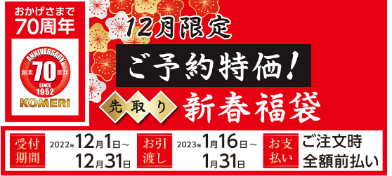 今年もやります!大好評の”コメリの福袋“!予約販売だからこその大特価!中身の分かるお買い得な「新春福袋」が2022年12月1日(木)より予約受付開始