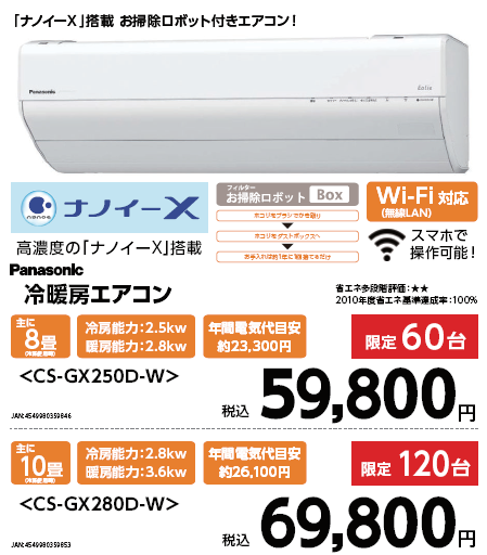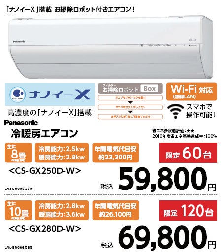 ・「ナノイーX」搭載 お掃除ロボット付きエアコン!