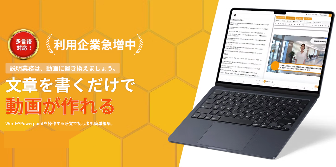 株式会社X(本社:東京都港区虎ノ門)は、2024年10月に提供開始したAIナレーション付き動画生成サービス「WriteVideo」の導入拡大に伴い、2025年5月より「医療DX支援事業者向け紹介パートナー制度」をスタートいたしました。現在、全国の監理団体、受け入れ企業、支援団体などを対象に、紹介パートナーを広く募集しております。制度の詳細は、無料オンラインセミナーにてご案内いたします。
