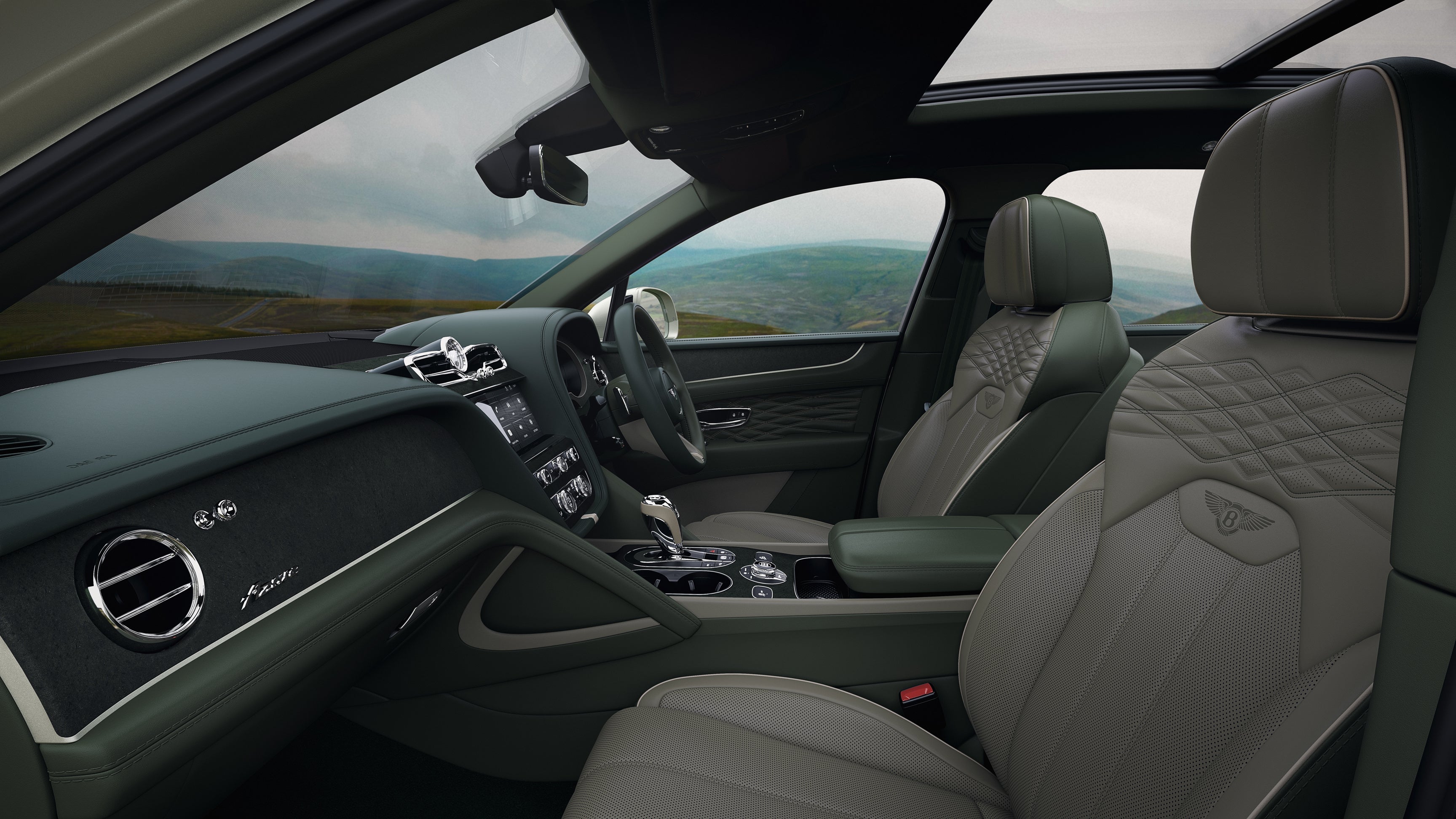 伝統と回想を表現し、大自然と真の現実逃避を謳歌するこの英国車には、アルパイングリーンのサテンペイントとグレイのサテンホイールが施され、インテリアにはベントレーの耐久レースでの勝利の伝統と、その苦闘の末に勝利をもたらした粋なベントレーボーイズを彷彿とさせるブリティッシュレーシンググリーン、そして湖水地方を想起させるカンブリアングリーンが配されています。この湖水地方は、英国版エクストラオーディナリージャーニーがクルーからスコットランドのケアンゴームのムーディーな渓谷を通り、スペイサイドのザ・マッカランのウイスキー蒸留所に向かう途中に通過する地域のひとつです。