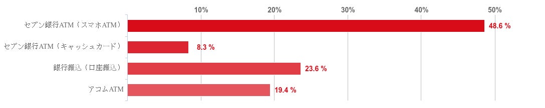 また、半数近くの人がセブン銀行ATM(スマホATM)から借入を進めており、その他には、銀行振込(口座振込)やアコムATMとの回答が一定数集まった。
