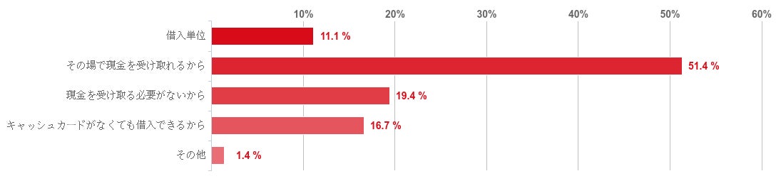 なお、上記の借入方法を選んだ理由について尋ねたところ、「その場で現金を受け取れるから」と答えた人が最も多く51.4%だった。