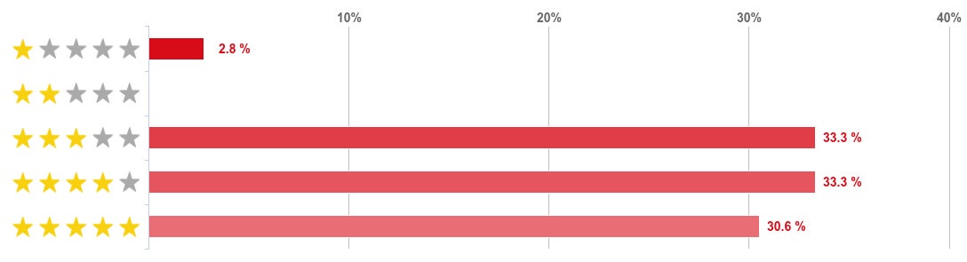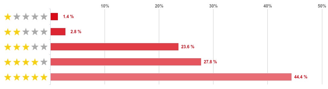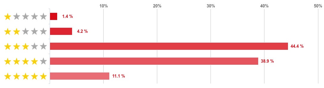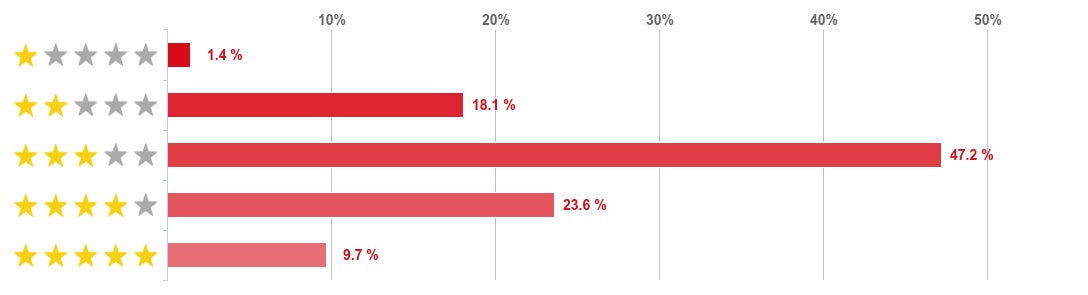 アコムのカードローンの金利は年3.0%〜年18.0%と消費者金融のカードローンの中では平均的な水準となっている。そのため3点と評価するユーザーが最も多いものと考えられる。