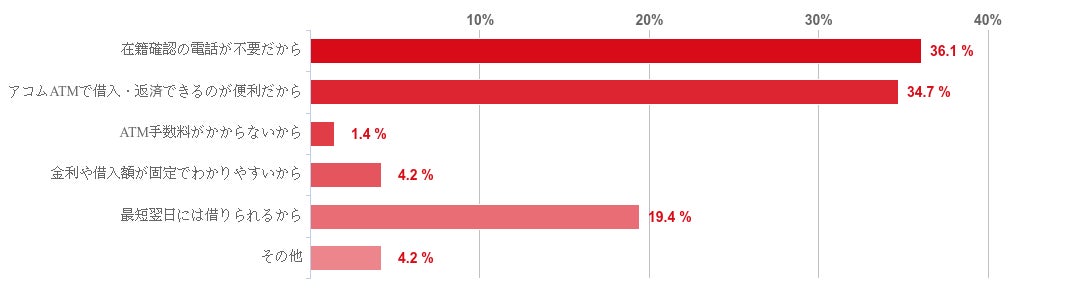 アンケートによると、回答者の約4割が「在籍確認の電話が不要」を理由にアコムのカードローンを借入先として選んでいることがわかった。