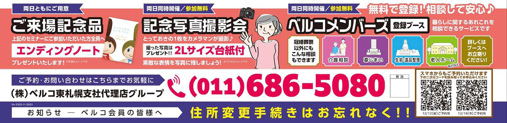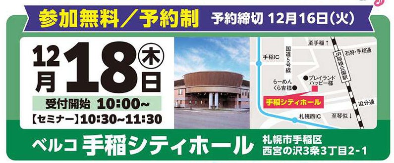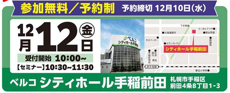 [株式会社ベルコ]主催、12月12日シティホール手稲前田・12月18日手稲シティホールで開催